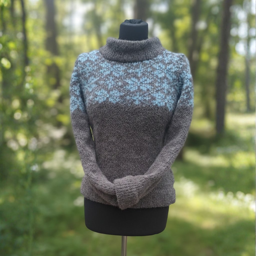 Tento unikátní svetr s norským vzorem je poctou zimě, tradici a ruční práci. Je dvojitě pletený, takže vás zima nezaskočí. Elegantní vzor vloček dodává svetru originalitu.